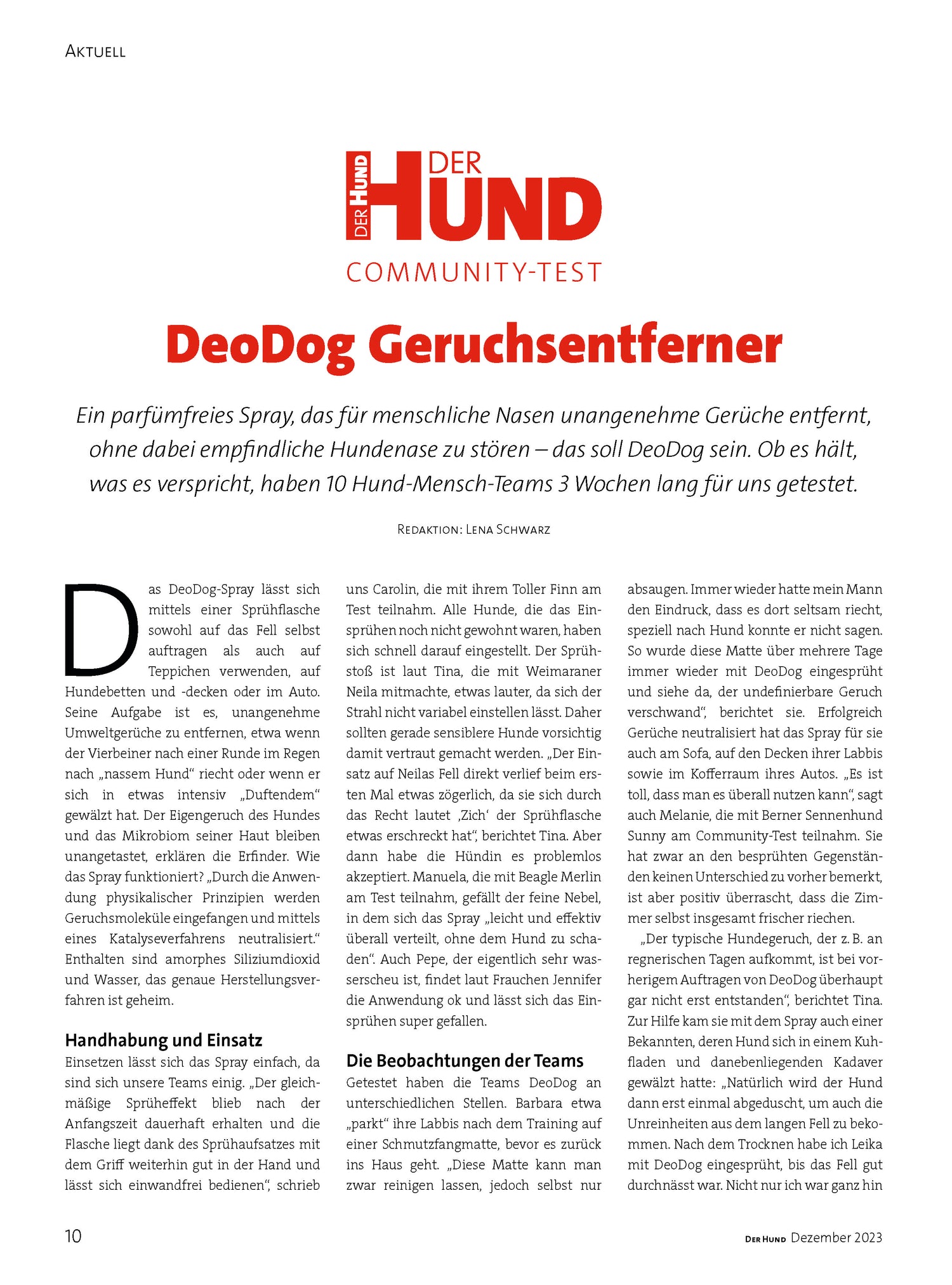 Dank DeoDog®, einer innovativen Technologie, die Geruchsmoleküle effektiv zerlegt, soll der Mief aber schnell wieder Leine ziehen. CITY DOG hat fünf fellige Tester ins Rennen geschickt und wieder für klare Luft gesorgt.